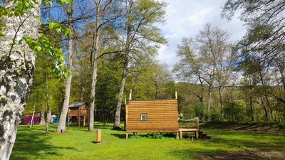 Dans le camping, emplacement dédié au camping-car, plat et herbé, 80m² minimum, 1/6p, électricité, accessible PMR, borne vidange, wifi, animaux acceptés. Aire situé dans un parc arboré, le long de la rivière Eau Mère. Service Pain/Bar/Restauration. - Hébergements